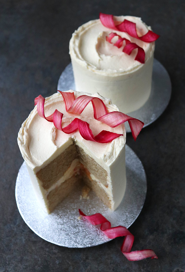 White Chocolate & Rhubarb CakeI'm tickled pink with my new 2025 Great Taste Award star! Here's what the judges said:'A fine-looking, sophisticated cake with elegant ribbons of rhubarb ... a great concept well realised ... thoughtfully made ... The rhubarb filling is tangy and sweet without being too sugary ... the decoration is beautiful ... a visual delight' Layers of sweet and tender white chocolate sponge, made with buttermilk and organic white chocolate, filled with fragrant vanilla-roasted rhubarb and white choc rhubarb buttercream. This is such a delicious cake – the contrast of softly sweet white chocolate and tangy vanilla rhubarb – what's not to love? Decorated with crisp rhubarb curls, in season. Other finishes available. All ingredients gluten free. 7-inch round £90.00; 8-in round £135.00; 9-in £180.00; 10-in £250.00 | ||